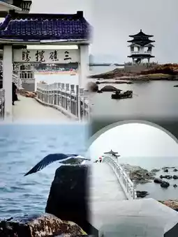 ❶The famous scenic spot in Xinghai Bay, Sanjiao Lansheng, is at the southernmost end of the beach, with three huge rocks each topped by a sea-viewing pavilion, connected by long bridges in the middle, which are very beautiful during both high and low tides🏰🌊