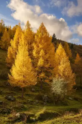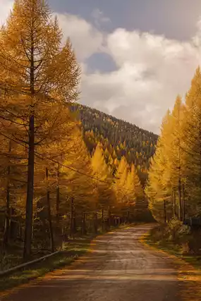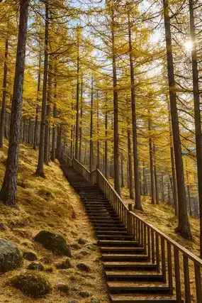 The whole mountain is draped in golden yellow, with layers of pine and birch forests. When the wind blows, leaves fall gently, as if stepping into a moving oil painting 🎨.