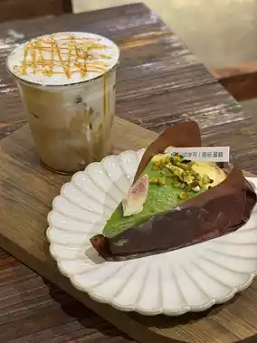 Basque is a soft heart, very soft and smooth to eat, rich pistachio flavor, not fake, plus a cup of caramel macchiato, straight perfect match!