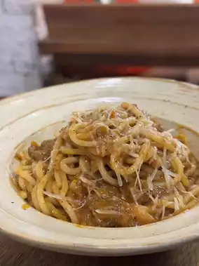 The coffee shop surprised me is that there are many hot main dishes, because most cafes in the ancient town do not have hot food provided, this cafe in addition to coffee and cake sell, but there are several main dishes and salads 🥗, this time I ordered a tomato meat sauce pasta 🍝, than I imagined surprisingly tasty 😋