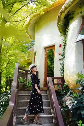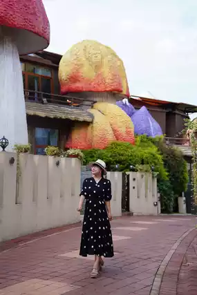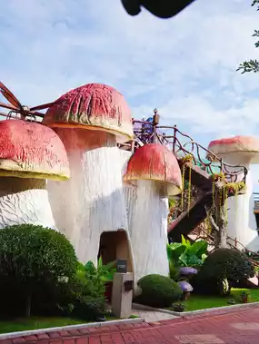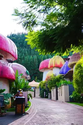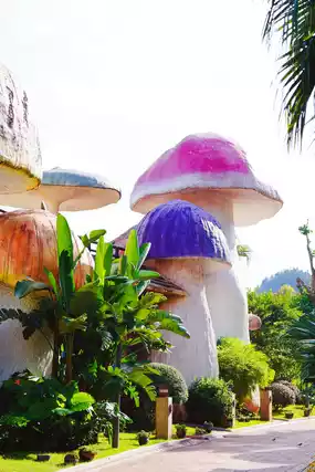 The hotel's houses are mushrooms of different shapes, such as wild chicken fungus, green head fungus, red fungus, boletus, and buckwheat fungus, etc. Full of fairy tale colors, it reminds me of the mushroom house where the Smurfs live.