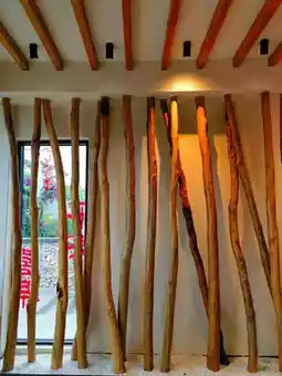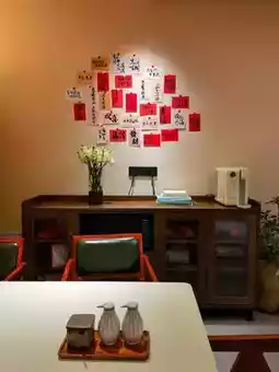 The hotel has a three-story structure, with the reception, dining, and leisure area on the first floor. On rainy days, an umbrella will be added at the door of the room, which feels particularly warm.