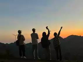 Navigation: Zhumashan, sunrise positions are under wind turbines No. 6 and No. 7, positions under wind turbines No. 3, No. 4, and No. 5 are more suitable for lawn camping and sunset viewing, in winter with suitable weather you can also see the sea of clouds, from March to April you can see azaleas, you can drive directly there, or park your car on the side of the cement road and walk to the wind turbines, the road is narrow and curvy, drive slowly