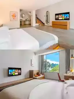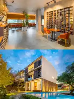 🏨The hotel is located in the Wanjia Forest Scenic Area, with an excellent location and a view of the mountains. The industrial style is integrated with local elements, and the overall dark tone style is calm and restrained. I especially like the gray wave brick wall of their home, which adds a bit of agility to the space. It is said that the inspiration comes from the local mother river Na Hui River.