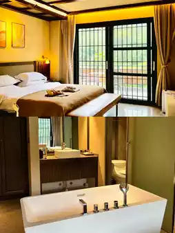 Tang Su is located in the core area of Wanfenglin Scenic Area, surrounded by mountains and fields, with a beautiful environment. While taking a bath, you can also see the beautiful pastoral scenery and the starry night view🌃. If you are tired of walking during the day, take a bath at night to relax your body and mind. It is so comfortable❗️
