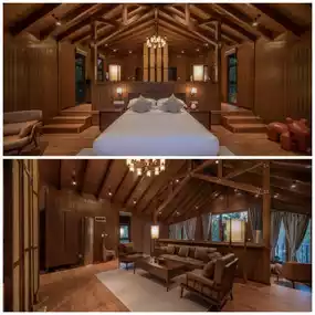 Once you get off the bus, you feel like you have entered a fairy tale world. The hotel is surrounded by dense forests, with trees towering into the clouds and sunlight streaming through the gaps in the leaves, forming golden beams of light. The fresh scent of grass and trees filled the air, the crisp song of birds in my ears, and the hustle and bustle of the city was instantly thrown out of the sky.