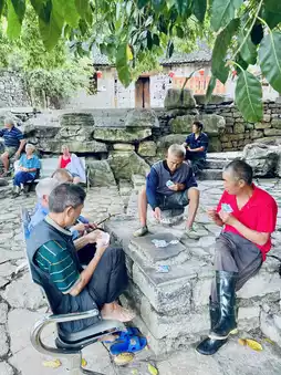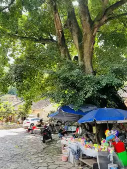 The village retains the traditional customs of the Buyi people, such as the "Flag-Walking Festival" and the mountain temple worship activities. Under the ancient banyan tree, old people are chatting, children are playing and chasing each other, and women are working in the fields. The life scenes are like a vivid rural painting.