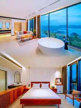 The homestay's room types include the Cliff View Balcony King Room on the third floor and the Cliff View Balcony Twin Room on the second floor. The rooms are fully equipped and offer first-class service, and are especially popular with couples and solo travelers.