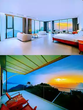Yuhuangding Fengxi Muyun is a cliffside homestay located in Taojiawan Group, Banbian Street, Zerong Township, Xingyi City, Guizhou Province, which opened in 2022. This homestay is located on a cliff with a unique location where you can watch the sunrise and sea of clouds in the morning, enjoy the mountains, rivers and lakes in peace, and watch the Milky Way stars at night.