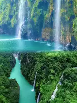 - **Waterfall Clusters and Karst Wall Hangings**: The canyon boasts numerous waterfalls, such as Pearl Gorge and Rainbow Waterfall, which are especially spectacular during the rainy season, with rainbows visible under the sunlight.