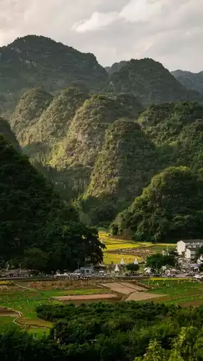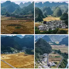Travel along the sightseeing vehicle route, where General Peak stands tall and majestic, and the Bagua Fields are as mysterious as a Taiji diagram; stroll through Nahui Village, a Buyi ethnic village with blue tiles and white walls, filled with the aroma of egg fried rice and chicken rice dumplings. In spring, enjoy seas of rapeseed flowers; in summer and autumn, golden waves of rice; in winter, the peak forest reflects on the water—surprises await in every season. Recommended stays include Rongsu Resort & Spa, overlooking the Fuzitian fields and offering tie-dye workshops; and Wuxun·Wanfeng Zhiye, a cozy forest-style guesthouse with signature mutton soup that warms both stomach and heart.