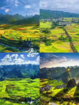 • Seasonal highlights: February-March rapeseed flowers, May rice planting, September golden harvests against peak forests 🌼