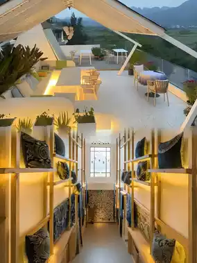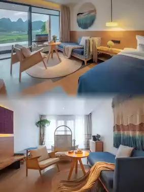 The inn features wabi-sabi design, but the real magic lies in its "custom-made" view boxes—every room is unique! My "Moon Embrace" room offered panoramic views of the Bagua Terraced Fields. At dawn, mist would flow like liquid milk over the peaks, while moonlight would gild Wanfenglin into silver waves at night. The butler told me they specially hired Bouyei artisans to build humidity-regulating rammed earth walls—no AC needed!