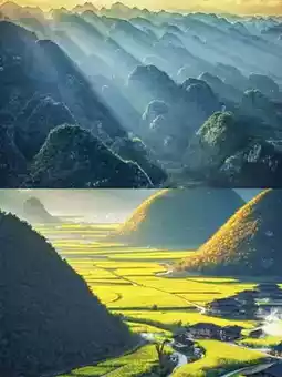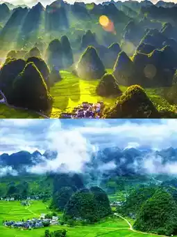 - A blend of pastoral scenery and Buyi ethnic villages, featuring seas of rapeseed flowers in spring and golden rice fields in autumn.