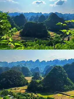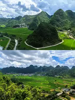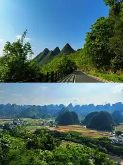 Wanfenglin Sightseeing Road: Overlook the vast ink painting of karst peaks and Bagua rice fields intertwined.