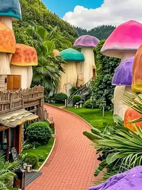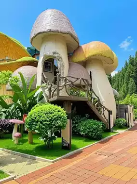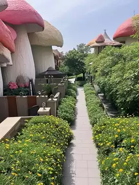 Who can resist a mushroom-shaped hotel! 🍄 As soon as you enter, it feels like stepping into a fairy tale world, with giant mushroom houses lining the streets, perfect for photos! The rooms have floor-to-ceiling windows + balconies that offer amazing views in the morning~ There are also various cartoon-themed rooms that kids don’t want to leave! Around the hotel is a Disney castle-style playground where kids can play from morning till night, freeing up parents’ hands!