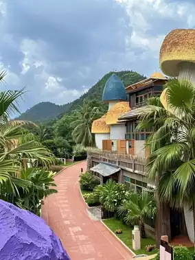 The hotel is all mushroom🍄 shaped! As soon as you enter the hotel street, the huge mushroom houses on both sides catch your eye, making you feel like you’ve stepped into a cartoon~ The rooms have floor-to-ceiling windows and balconies with amazing views! There are also various cartoon-themed rooms that make kids super excited! Around the hotel is a children’s playground just like the Disney castle, where kids can play all day without getting bored, and parents can finally take a break!