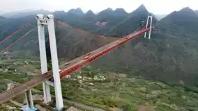 Baling River Bridge, located in Guanling County, Anshun City, is a super-large highway bridge on the G60 Hukun Expressway. Construction began in April 2005, and it opened to traffic in December 2009. The main bridge is 1088 meters long, with a height of nearly 370 meters from the bridge deck to the valley water surface. After completion, international parachuting and bungee jumping competitions have been held here. This bridge is currently the highest commercial bungee jumping facility in the world (Photos 1, 2).