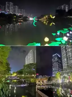 ‼️: The park hosts many markets and is lively at night. There are many nearby food options; we recommend Shengzhiwei Buyi Sour Fish Soup, Zouji Chicken Rice Balls, Zhenfeng Glutinous Rice, and Zhang Xiaojun Lamb Noodles.