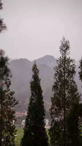 Looking from a height, thousands of peaks stretch like a sea. From a certain angle, several green peaks cleverly connect, and the cursive "Fu" character vividly appears between heaven and earth. This is not man-made carving but a miracle created by the mountain shapes and natural light and shadow together. It has lain quietly for millions of years, waiting for a destined person to encounter this blessing in the morning or evening light.