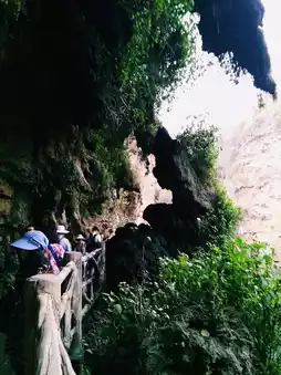 Malinghe Grand Canyon, renowned as "the most beautiful scar on Earth," boasts magnificent and unique landscapes. Within the deep valley, a rushing river carves its way between towering travertine cliffs that stand as if sculpted by nature. The canyon is dotted with cascading waterfalls, where waters range from powerful surges to gentle streams. Visitors can traverse cliffside pathways to witness the wonders of natural karst caves and water-curtained grottos up close. Above, a lofty viaduct spans the canyon, adding a majestic touch of harmonious coexistence between humanity and nature. This spectacular site embodies the marvels of karst topography, blending wonder, grandeur, and beauty into one unforgettable experience.