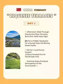 🚗 Drive to Ziquejie (~3.5 hrs) through mountain roads with stunning views