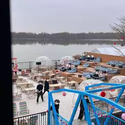 There are lazy sofas and camping 🈺-style dining chairs placed outdoors, and the ground is covered with gravel, creating a full camping 🏕️ atmosphere🈵. There are also transparent bubble tents⛺, so you don’t have to worry about the strong wind and cold even if you sit by the river in winter, and you can enjoy this relaxing time.