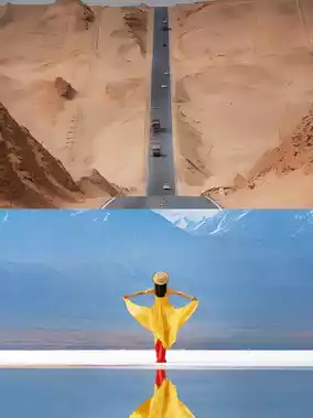 👉Chaka Salt Lake (Chaka Town, Ulan County): It's like walking in the clouds☁☁☁, and the photos are super cinematic📷📷📷.