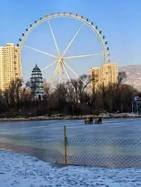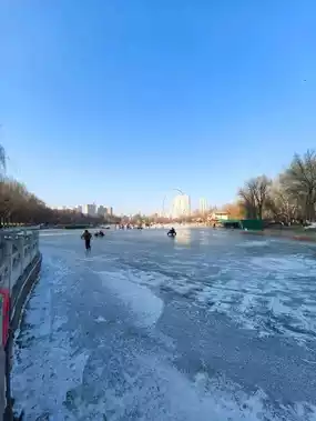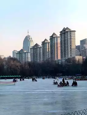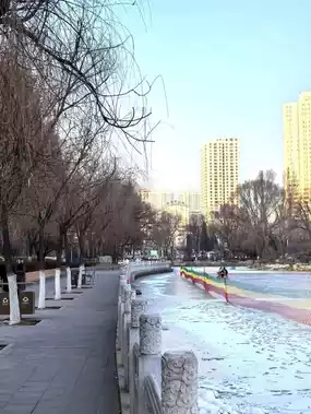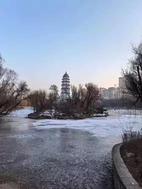 During the winter months, Xining People's Park takes on a distinctly serene and picturesque character. The cold weather transforms the park into a tranquil retreat, offering a unique experience for those who visit. The lake, a central feature of the park, often freezes over, creating opportunities for ice-related activities. Locals and visitors alike may enjoy walking on the frozen surface (when deemed safe) or simply taking in the peaceful, icy scenery. Winter also brings fewer crowds, making it an ideal time to appreciate the park's natural beauty in a quiet and reflective atmosphere. This season provides a perfect setting for relaxation and a chance to connect with the calmness of nature amidst the urban environment.                                                                                    #frozenlake