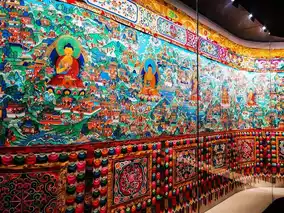 618-Meter Giant Thangka: Located on the fourth floor of the South Hall, the "Grand View of Chinese Tibetan Culture and Art" is the museum's crown jewel. This Thangka, recognized by the Guinness World Records, spans 618 meters and covers 1,500 square meters. Created by over 400 master artists over 27 years, it features more than 700 Thangka paintings and 3,000 embroidered patterns, depicting Tibetan cosmology, history, religion, and more. Take your time to appreciate its intricate details.