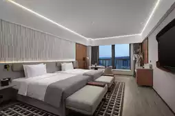 The hotel features 178 European-style guest rooms and suites, designed with simplicity and comfort in mind. Particularly recommended are the 40+ square meter family rooms. Rooms are equipped with electric curtains, smart toilets, 65-inch HD TVs (supporting screen mirroring), and beds with globally renowned brand mattresses paired with high-quality down bedding for a deep sleep experience. Children will especially love the MOMO-themed tents and puzzles, immersing them in a world of fun as soon as they enter. Some rooms offer views of the lush greenery of Xining's South Mountain, allowing guests to enjoy the fresh and tranquil highland air during summer stays.