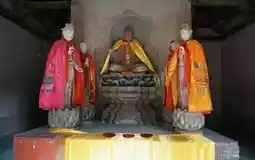 Enter Fazang Pavilion and you will see three clay statues of Buddha. The Medicine Buddha is enshrined in the middle, with the Sunlight Bodhisattva and Moonlight Bodhisattva on either side. These statues have plump skin and beautiful shapes. Each one exudes a solemn and sacred aura that will leave you in awe.
