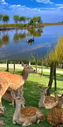 There are also some cows, alpacas and other animals~ There is also a small amusement park nearby with trampolines, small zip lines, and children can play casually.