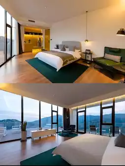 The homestay is located on the top of Fuxi Mountain, 800 meters above sea level, and is equipped with a luxurious open-air infinity pool. While swimming and relaxing, you can also enjoy the beautiful mountain scenery. Especially in the evening of summer nights, lying on a lounge chair by the swimming pool, feeling the cool breeze from the mountain, watching the setting sun, and the stars gradually appearing, it is so romantic.