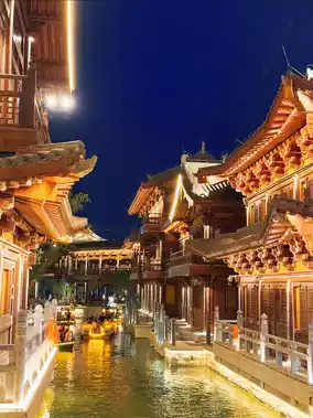 Just 40 minutes from Zhengzhou, there lies a poetic Qinwei Water City. Here, the themes of "Feng, Ya, Song" from the Book of Songs weave together ancient sites, light and shadow, and lively scenes. You can explore the grandeur of the ancient county office by day and enjoy the flowing lantern lights by night—perfect for a weekend getaway.