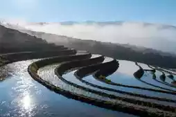 On the second day, I got up early to see the terraced fields in Leqiu Township with the owner. I didn’t have high expectations, but when we reached the mountaintop, I was stunned—the morning mist wrapped around the terraces, layer upon layer stretching down the slope. As the sun rose, the mist gradually dispersed, and the water droplets on the ridges sparkled like scattered silver. The best part—there was no one else! Just me and the owner, free to take photos however we wanted, no fighting for spots. At noon, we ate farmhouse dishes in the village. The cured meat was smoked by the owner’s family, fatty but not greasy. The stir-fried bracken was crisp, and mixed with brown rice, I ate two big bowls. In the afternoon, we visited a nearby ancient Yi village. The houses were all made of adobe walls with thatched roofs, and the stone paths were polished shiny from foot traffic. The village was very quiet, with only elderly people sitting at their doorsteps drying corn. They smiled and offered us bitter buckwheat tea. The tea was a bit bitter but left a sweet feeling in the throat after swallowing.