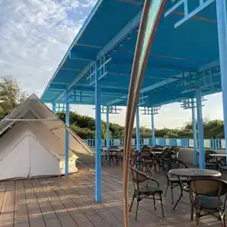 This is a great place to watch the sunset. You can order some food or drinks and go to the outdoor seats upstairs to enjoy the sea, the beach and the beautiful sky. There are also some aquatic animals inside, and their introduction is included!