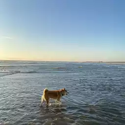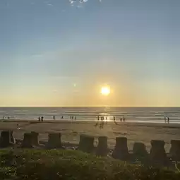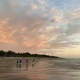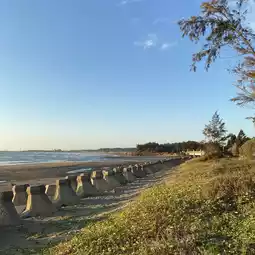 The soft and clean beach, with many plants, is very suitable for surfing with family or friends. My dog also likes to jump in the waves here😆The sunset here is really beautiful and the view is great!