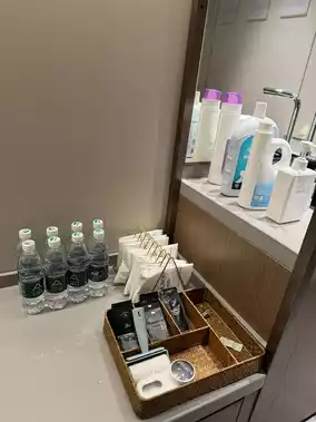 Laundry room!!! Gym!!! TV room with fast screen casting!!! Equipped with a mini-fridge!! There's also a robot that can deliver takeout upstairs!!! And the room has a variety of disposable items, which is very friendly for those with a cleanliness obsession.