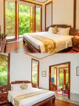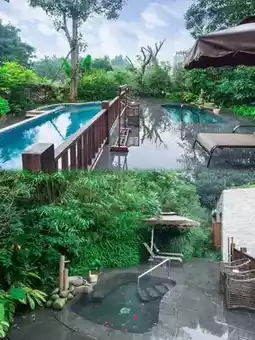 Set against deep mountains and divine valleys, by the long water π bamboo creek, the hotel's layout follows the philosophy of 'integrating landscape with nature, returning to the natural world.' Surrounded by primeval forests π² with an anion content equal to that of Bama longevity village. With small bridges, waterfalls, winding paths, pavilions, and terraces, it's a unique haven with a natural, fresh, and elegant environment, a bird-song and flower-scented 'natural oxygen bar' that people dream of.