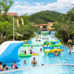 Yuetianxia Hot Spring Resort is a great place for the whole family to have fun! It features a unique swimming lane and numerous water games, providing entertainment from morning till night! In the evening, we relaxed in the hot spring area, which offers various medicinal hot springs with unique benefits.