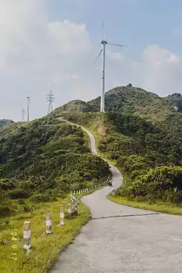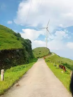 📍 Navigate to Xinxing Windmill Mountain, which is about an hour's drive from the hotel. We slept until we woke up naturally and had lunch before setting off. When you get to the foot of the mountain, there are people renting motorcycles. We went there on a holiday and rented one for 180 yuan. (The road on the mountain is very dangerous, with ups and downs and bends. There are no guardrails in some places, so you must pay attention to safety when riding a motorcycle!) The scenery on the mountain is beautiful, but there are cows all the way, so you must pay attention to your feet. You can see people concentrating on eating vegetables on the road. Sisters who come here, remember to bring a sun protection clothing or a small jacket! There is no shelter up there and the wind is very strong on the mountain.