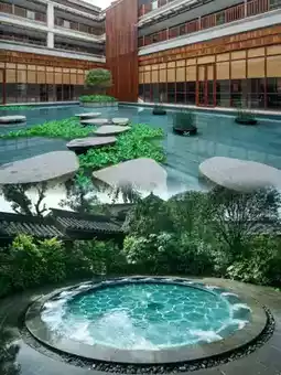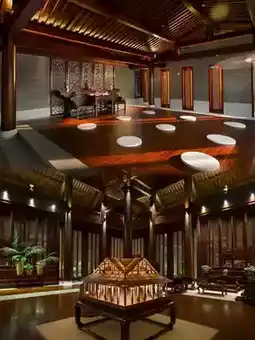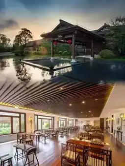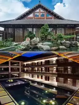 The hotel is famous for its unique Chinese garden architecture and Zen culture theme. The hotel covers an area of 120,000 square meters, with a building area of more than 80,000 square meters. The lobby is made of solid wood mortise and tenon structure, which is magnificent, elegant, and solemn.