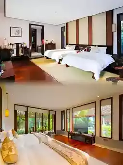 The hotel has 28 boutique villas in the style of Lingnan courtyards, each of which is full of Cantonese Zen charm. Whether it is a deluxe king room or a family-themed room, it is spacious and comfortable, with complete facilities and beautiful views outside the window. The room is equipped with a full set of rosewood furniture and essential oil aromatherapy, which is elegant.