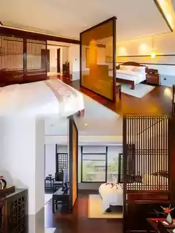 The hotel also has a children's playground, indoor and outdoor swimming pools, chess and card rooms, gyms, and other facilities, as well as special Zen experiences, such as Zen meditation, copying scriptures, Zen martial arts integration, and heart lamp transmission, allowing you to find inner peace in tranquility.