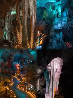 1️⃣ Panlong Cave: A 100-million-year-old karst wonder! Stalactites resemble coiled dragons, transforming into a fantasy under colorful lights—every snapshot looks like a sci-fi blockbuster 📸.