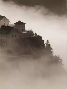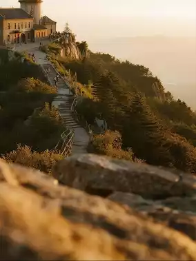 ▫️International Architecture: The modern architectural complexes on the mountain have a special charm against the backdrop of red leaves.