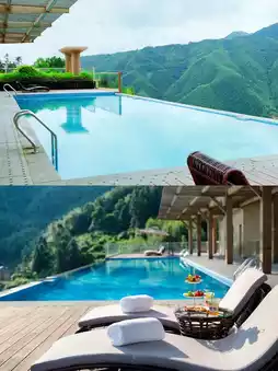 There’s also an infinity pool and mountain hot springs—slow-paced life with maximum relaxation!