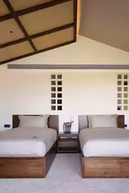 As soon as you walk in, the space is huge, and the solid wood furniture is full of charm. The room is equipped with super comfortable twin beds 🛏 and a large bathtub for a relaxing soak.