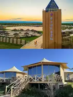 Located on the south bank of the Irtysh River, it adopts the design concept of Kazakh nomadic felt tents and uses large panoramic floor-to-ceiling windows, blending with the desert naturally, returning to a natural accommodation experience.